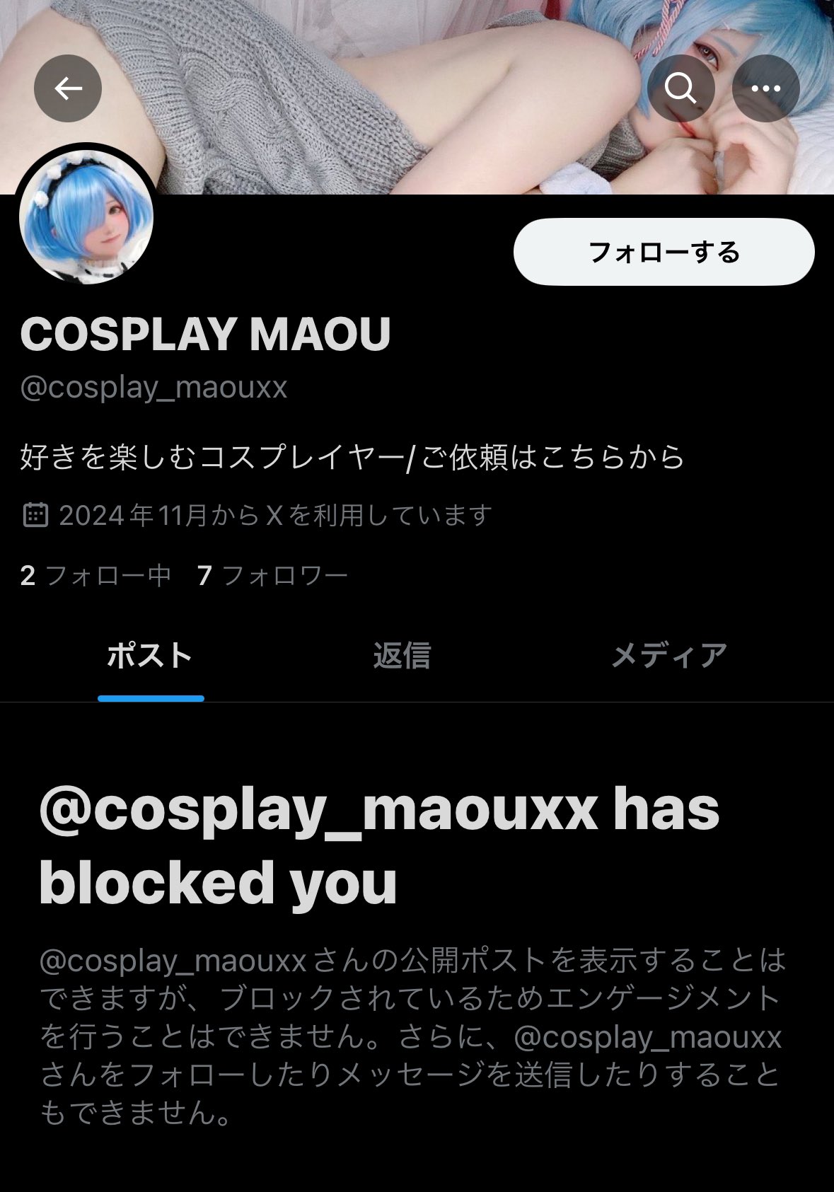 mentions a reported account affecting multiple cosplayers, suggesting potential issues with impersonation or bot accounts. While not directly linked to